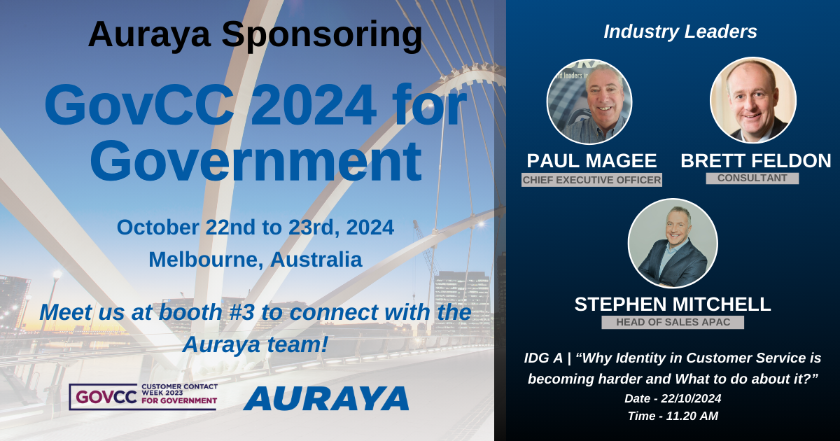 EventOctober 27, 2025 Auraya at GovCC 2025 – Leading the Conversation on Identity Protection Read More